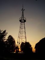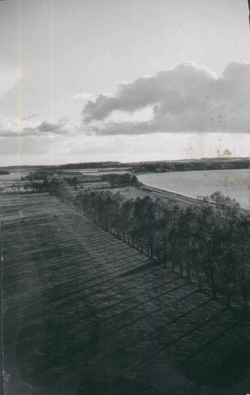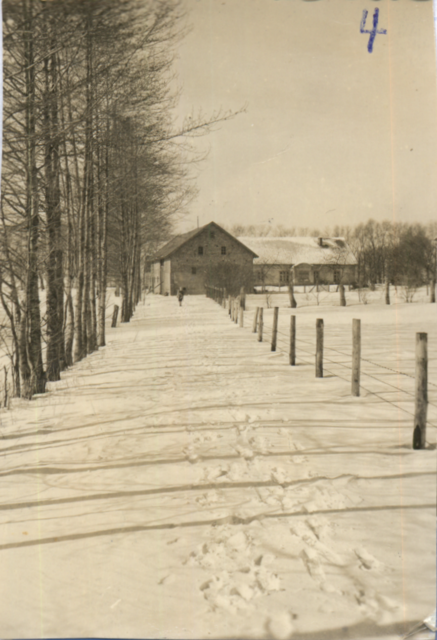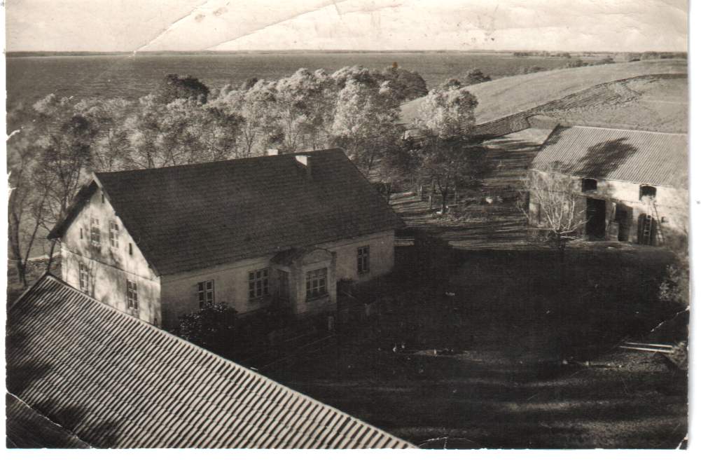 | Blick auf das Wohnhaus | Blick von der Windturbine auf den Hof (In der Mitte das Wohnhaus) 1942 | Blick von der Windturbine Richtung Süden | Die Windturbine mit 2 Kletterern 1940 |