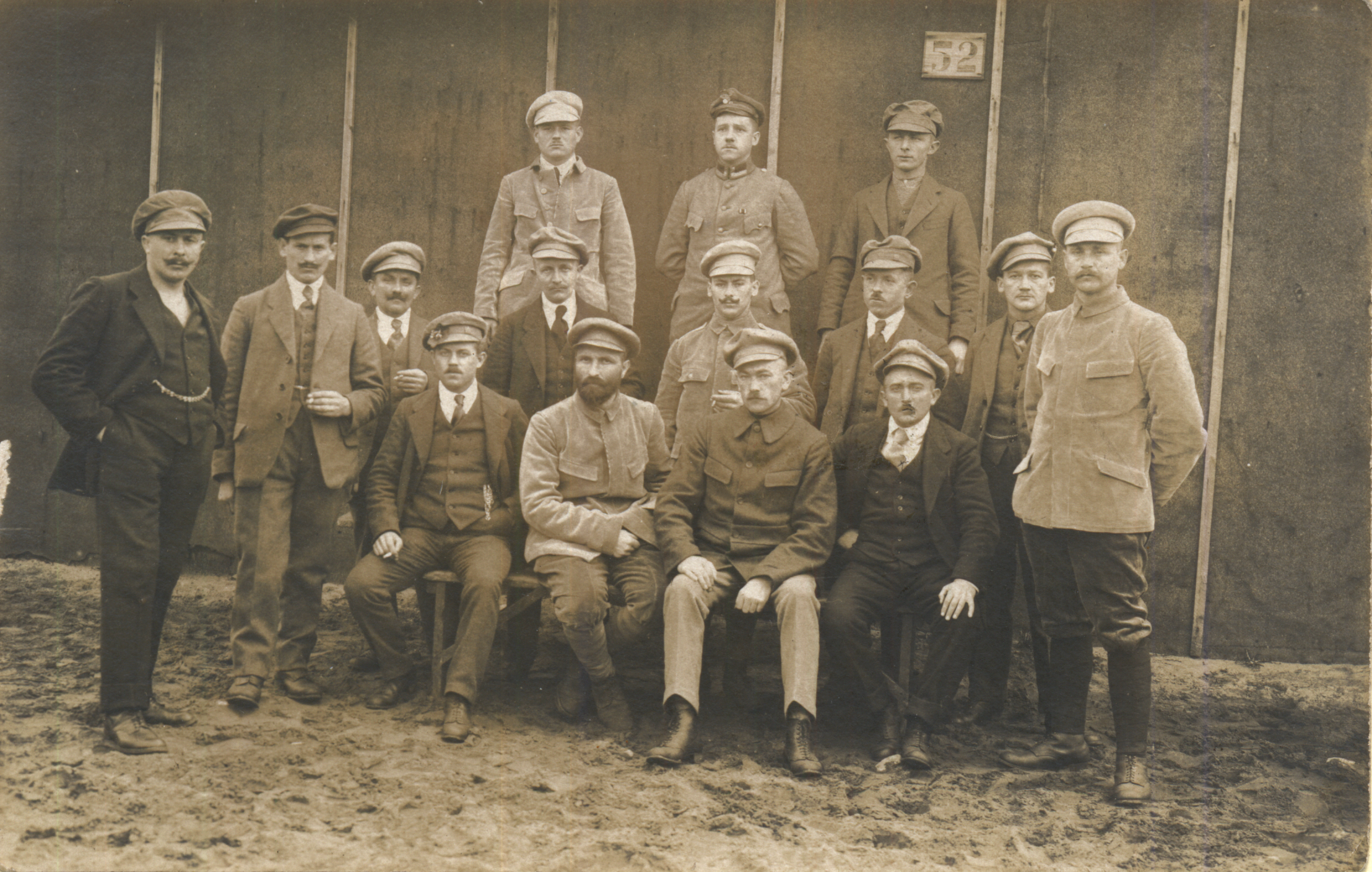 | Herbert Bergmann (In der Mitte mit verschränkten Armen) | Rückseite | Herbert Bergmann (ganz oben) Weihnachten 1914 | Herbert & Meta Bergmann und Ella Volkmann (Schwester v. Meta) 1917 | ||||||||||