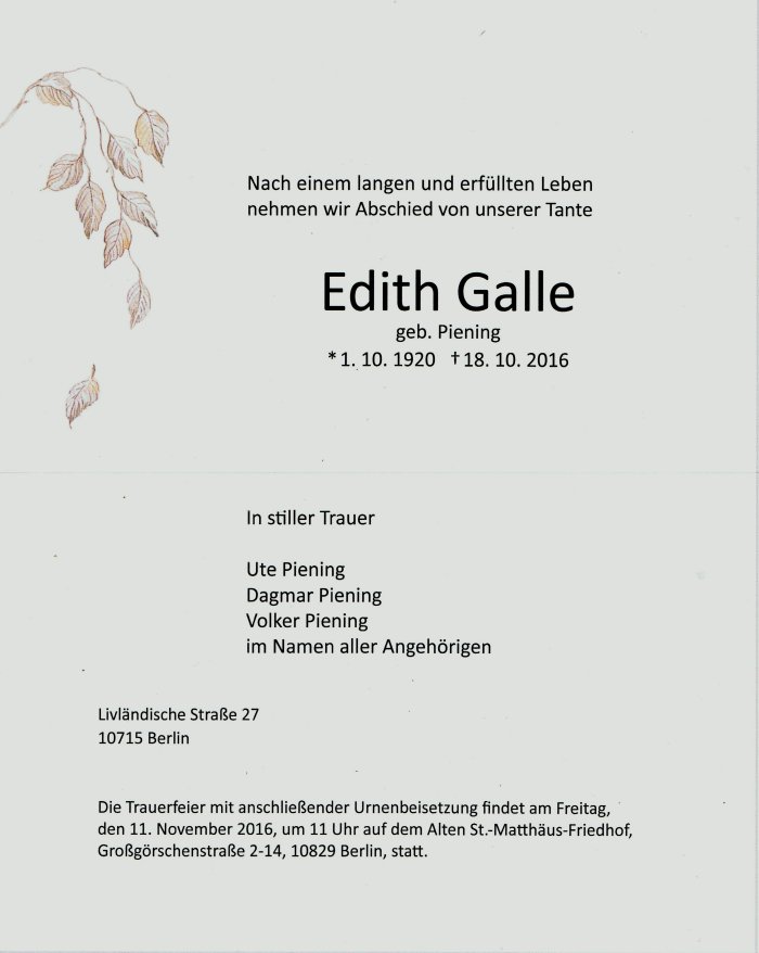 Edith Galle (geb. Piening) |