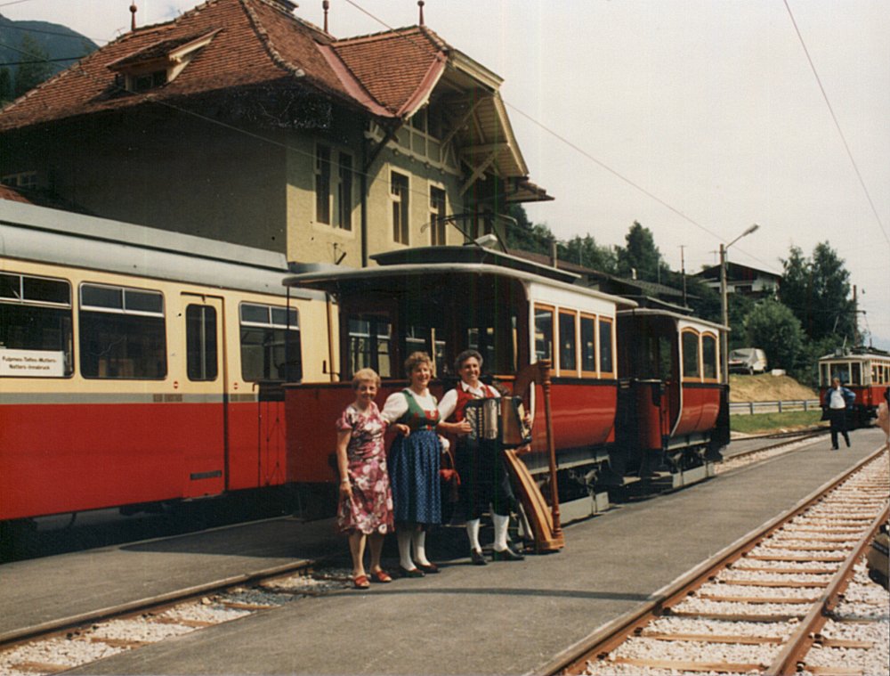 Fahrt der Reisegruppe der "DB Frankfurt" von Interlaken durch den Löschberg nach Brig am Simplon. Hier besuchte Herr Kutzner die Furka-Oberalp Bahn. Die Passstrecke Brieg-Andermatt wurde am 11Oktober 1981 eingestellt Nach der Eröffnung des Tunnels am 25. Juni 1982 unterstützte Hr. Kutzner den Wideraufbau der Pass-Strecke später finanziell mit Spenden.. Diese Schweizreise führte ihn am 29.06.1990 auch zur Sensetalbahn (Dampfbahn Bern). |