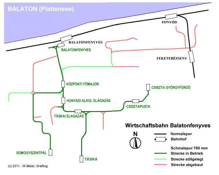 nur noch die drei Streckenäste von Balatonfenyves nach