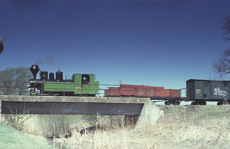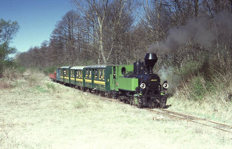 betrieben. Die Trasse der Wirtschaftsbahn ist feldbahnähnlich und