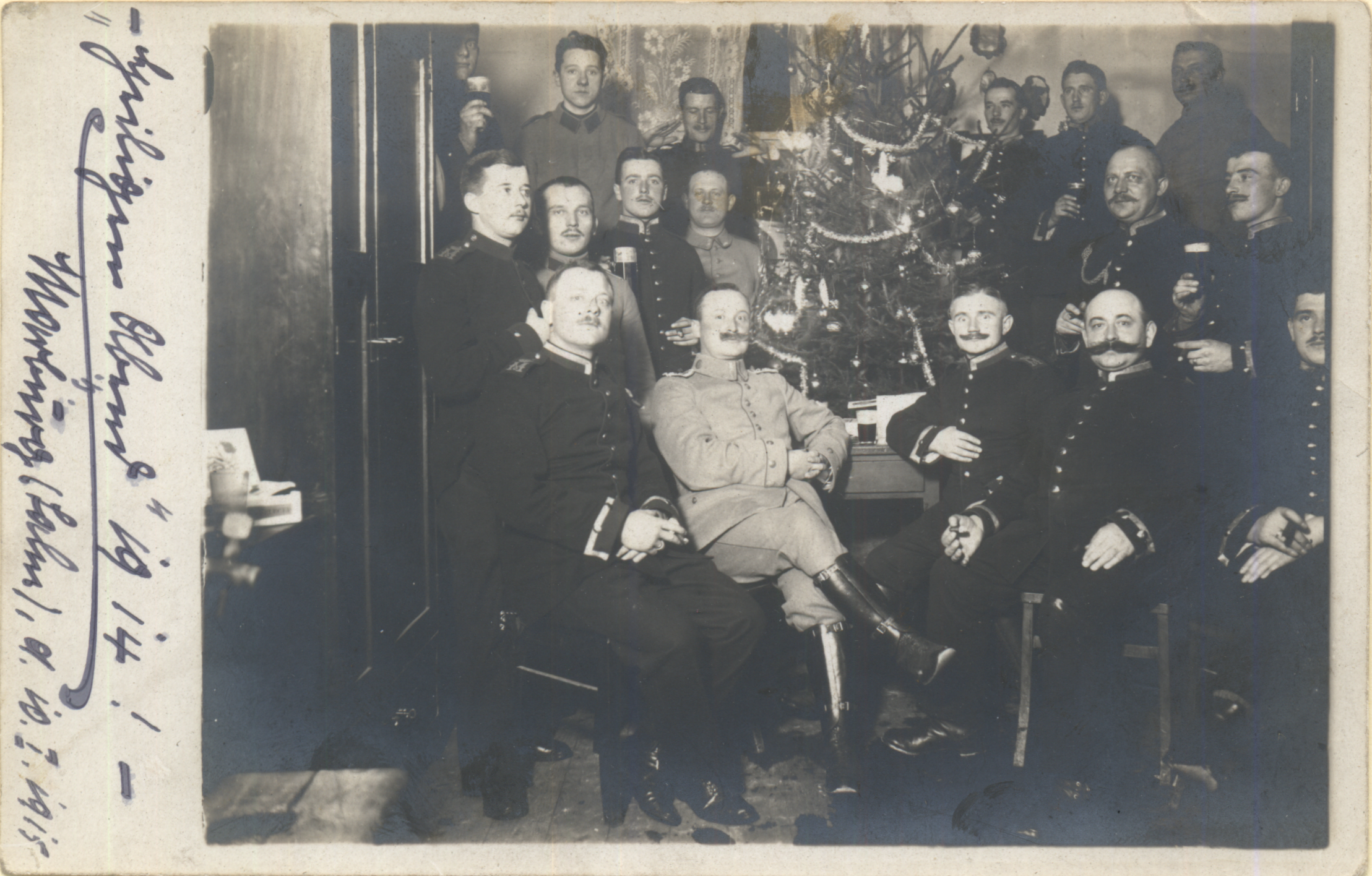 | Herbert Bergmann (In der Mitte mit verschränkten Armen) | Rückseite | Herbert Bergmann (ganz oben) Weihnachten 1914 | Herbert & Meta Bergmann und Ella Volkmann (Schwester v. Meta) 1917 | ||||||||||