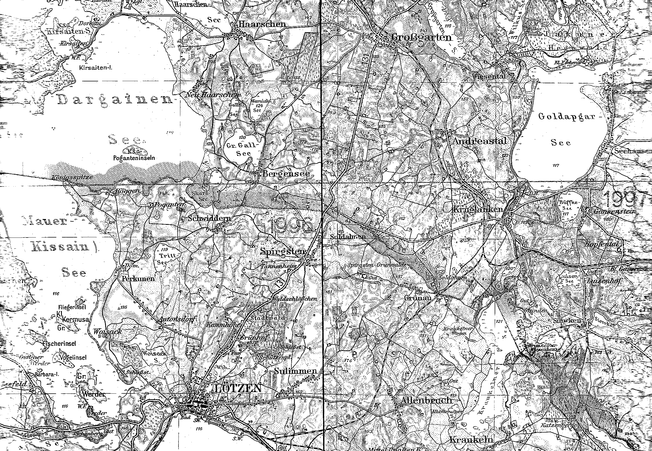 | Der Mauersee | Das Gebiet zwischen Lötzen und Haarszen | Ausschnitt Haarszen - Neu-Haarszen | Haarszen | ||||||||||