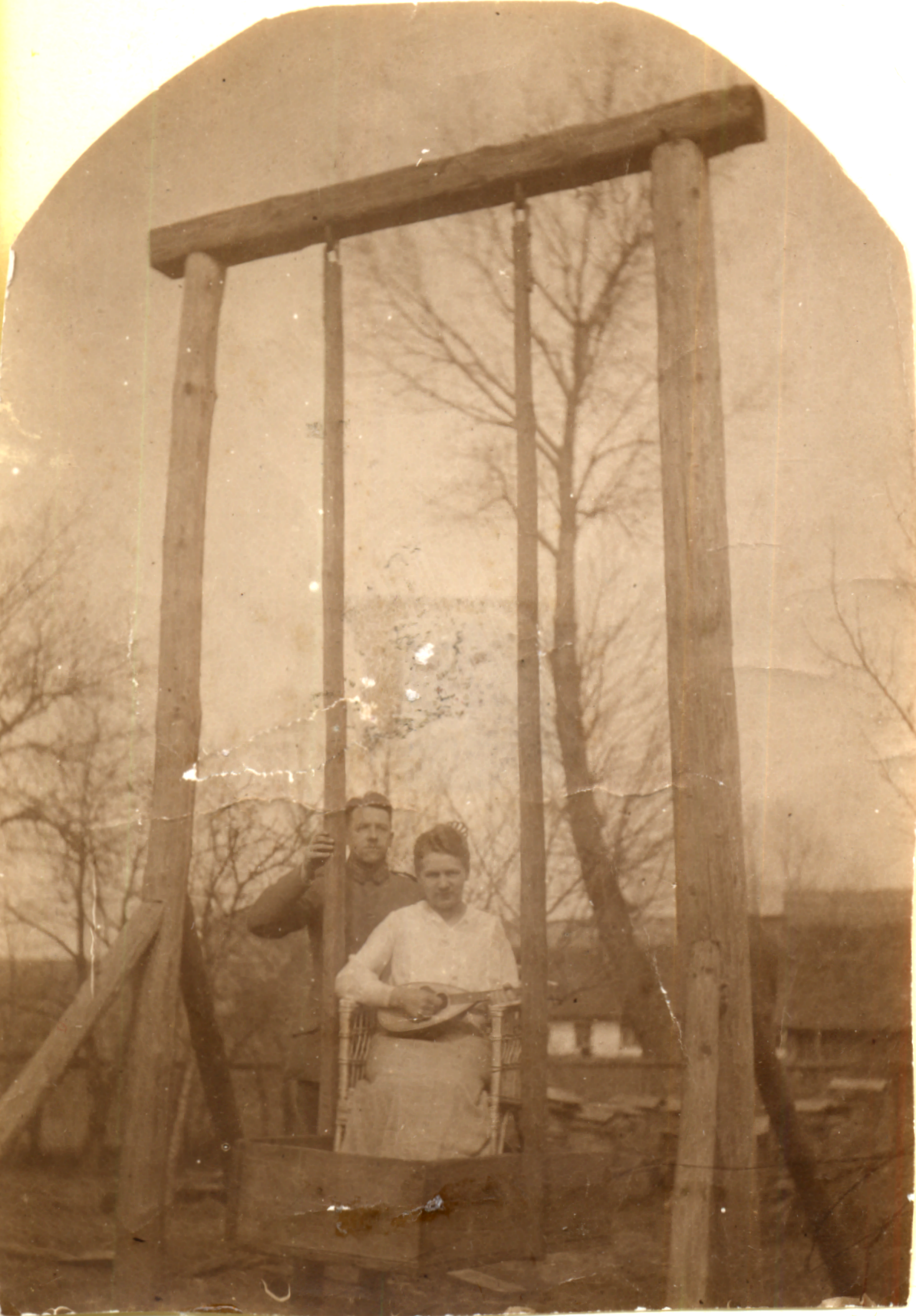 Der Nordbahnhof der Goerzbahn während des Krieges. Nach dem Krieg wurde sein hölzernes Dach von den Anliegern verheizt, oder, wie durch meinem Vater, für ein Laubendach verwendet. |