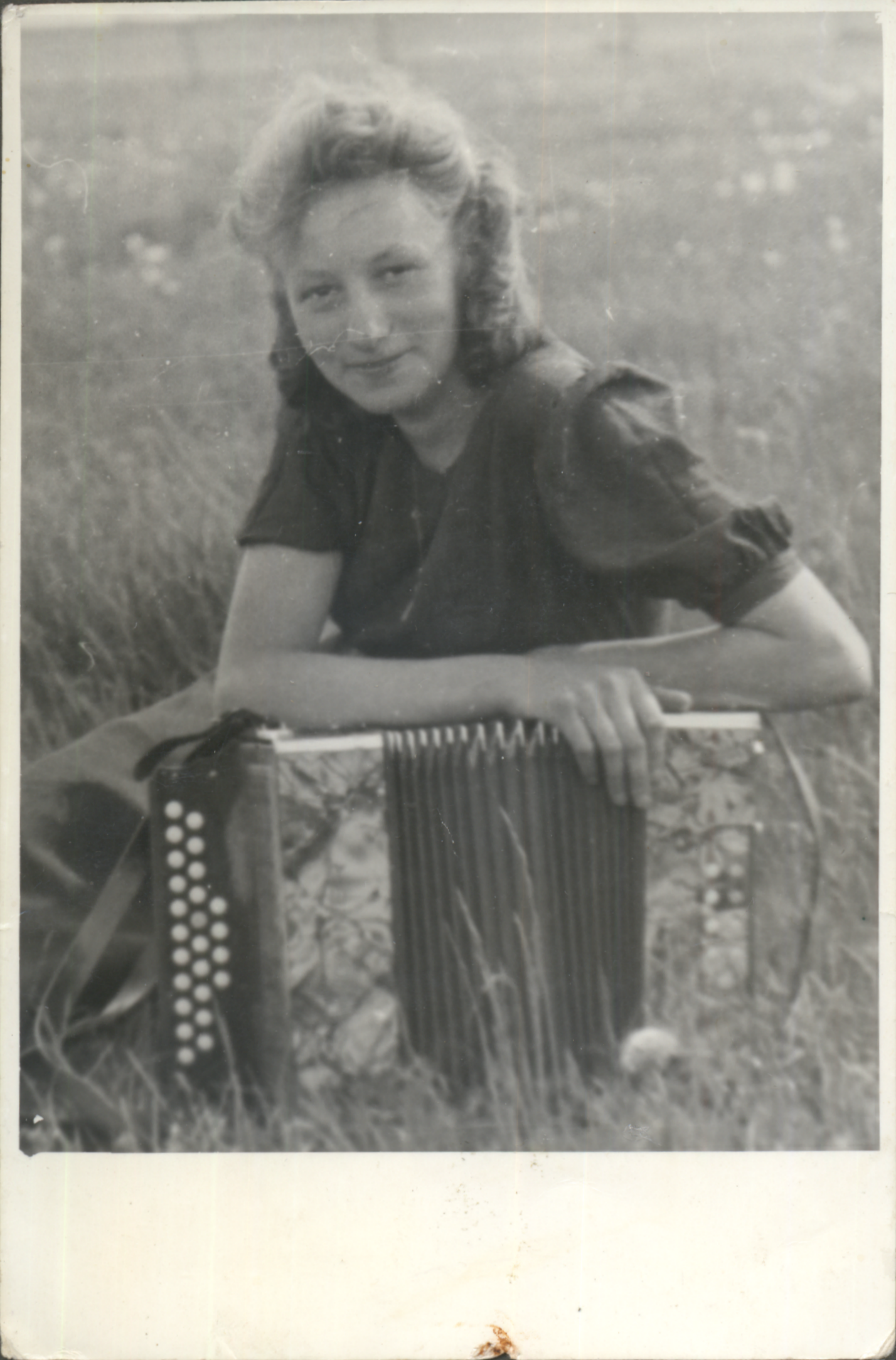 | Mauersee - Lilli Bergmann, Inge Bergmann & Herr Schneider | Inge Bergmann mit Quetschkomode | Elfriede (Mausi) Tarrach (später verh. Rudolf) (Cousine v. Lilli) & Lilli Bergmann | Gerhard Meier mit Akkordeon auf dem Gunstnik (Hof der Fam. Bergmann) | ||||||||||