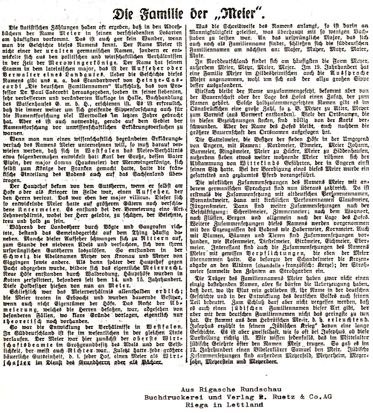 Die Familie der Meier (Ausschnitt aus der Rigaschen Rundschau, 1930er Jahre) Im Stil der Zeit |