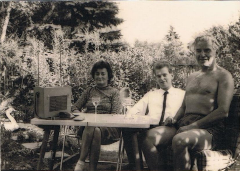 Zwar gab es unter den Ahnen der Familie Meier tatsächlich mal einen echten Musiker, Georg Heinrich August Benada war einer. Bekannt ist über ihn nichts. Auch spätere Benada´s waren Musiker. Dieser Benada war der Urgroßvater meiner Großmutter Elisa Meier. Aber das alles bedeutet nichts, die meisten Meier´s spielten und spielen auch heute keine Instrumente, außer zwangsweise kurze Zeit mal Blockflöte. In der Familie Meier hatte Georg Meier als Kaffeehaus-Stehgeiger sein Ingenieur-Studium finanziell aufgebessert. Später stand im Haus in Lichterfelde West im Damenzimmer im Erdgeschoß ein Klavier und dort übte meist Ursula Meier ihr Violinenspiel. Auch Elise Meier konnte Klavier spielen, tat es aber sehr selten. Während die anderen nach Noten spielten, war es bei Gerhard Meier etwas anders, er konnte das auch ohne. Er spielt oft nach Gehöhr Potpourris und auch länger Stücke. Er improvisierte gerne. War kein Klavier vorhanden, ging es auch auf einem Akkordeon (Schifferklavier). Auch Ingeborg Bergman beherrschte dieses spielen ohne Noten. Sie Spielte jedoch auf einer Ziehharmonik (einer Quetschkommode, oder Knopfklavier genannt). Ich erlebte sie einmal in voller Aktion im Museumsdorf Bayerischer Wald. Dort quälte sich eine musikalische Hintergrund Berieselung über das Weißwust-Essen. Als die Darsteller eine Pause machten, stürmte sie auf die Bühne, bat um das Akkordeon und mische eine halbe Stunde den Saal auf. Mein Vater liebte Musik und hörte Sonntags das Frühkonzert des NWDR bzw. WDR auf Mittelwelle aus Köln. Man konnte meinen, fast in Originallautstärke und er schlief dann bei dem Getöse vor dem Radio ein. Wenn man nun die Gelegenheit nutzte und zum Radio spurtete und leiser stellte, schrecke er hoch: "Was ist?". Er war sehr stolz, dass die von ihm gebauten Radios auch bei dieser Lautstärke nicht verzerrtem. :-) Musik begleitete auf jeden Fall sein Leben. Schallplatten, sehr viele Schelllackplatten, viele davon unveröffentlichte Tochterplatten. Radio und Fernsehen war seine Welt. Anfangs baute er Radios in US-Jeeps ein. Radartechnik - in der er zuvor für die Luftwaffe unterwegs war - war nach dem Krieg für Deutsche verboten. Dann entwickelte er zwei Werbewagen einer mit einer umlaufenden Werbeschrift für die gerade aufkommenden neuen Fernsehgeräte. Nach einem Zwischenspiel in einem Forschungs- und Entwicklungsbüro war er bis zur Rente bei den Zentralwerkstätten der AEG als Ing. in der Arbeitsvorbereitung tätig. |
