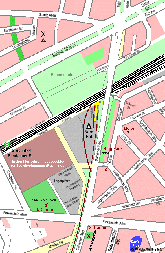 Der erste Schrebergarten befand sich neben der Firma Industriebau West, der zweite spätere direkt am Dahlemer Weg, kurz hinter Ecke Finkenstein Allee und war nun ohne eine Laube. |