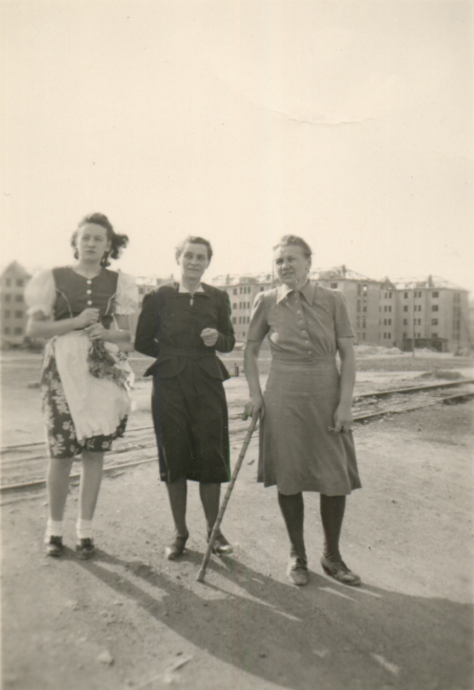 Die Goerz Bahn entlang des Dahlemer Weges | Lilli Meier geb. Bergmann, Meta Bergmann und Ingeborg (Inge) Bergmann in der 1950er Jahren | |||||||||||