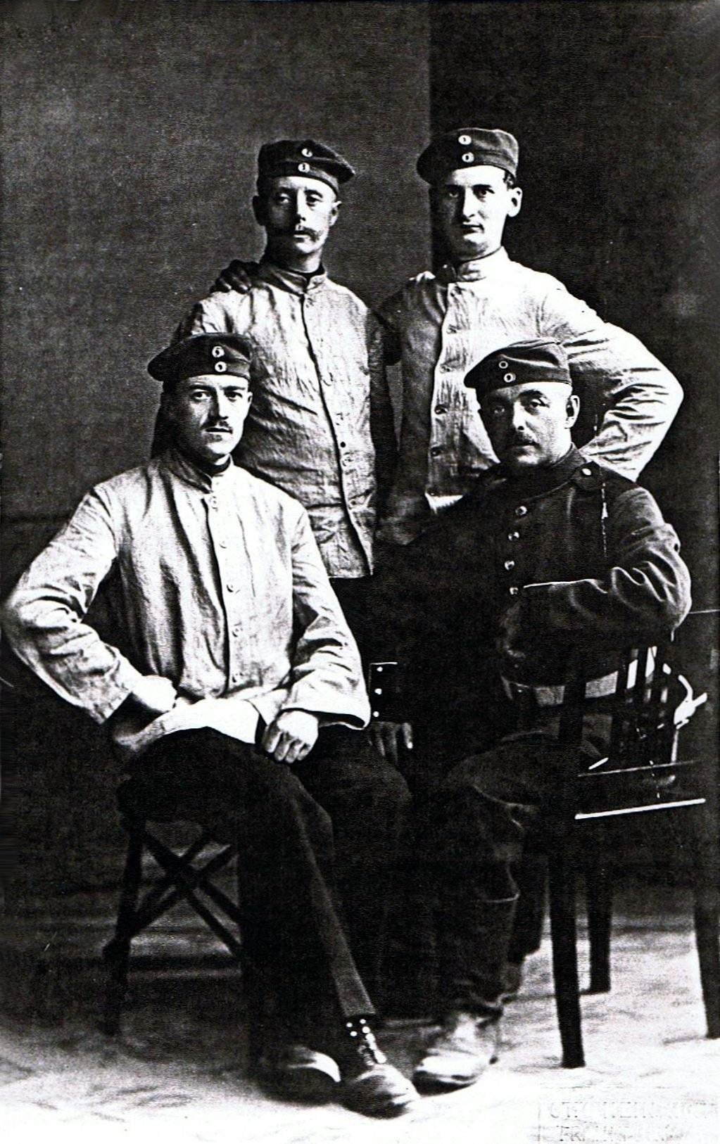 | 1914 Otto Meier Rekrutenzeit | Otto Meier zum Gedenken an die Rekrutenzeit Frankfurt a.Od. am 30.08.1914 | ca.1914 Otto Meier - Bruder von Georg Meier | Otto Meier im Schlossgarten von Ville am 30.05.1915 | ||||||||||