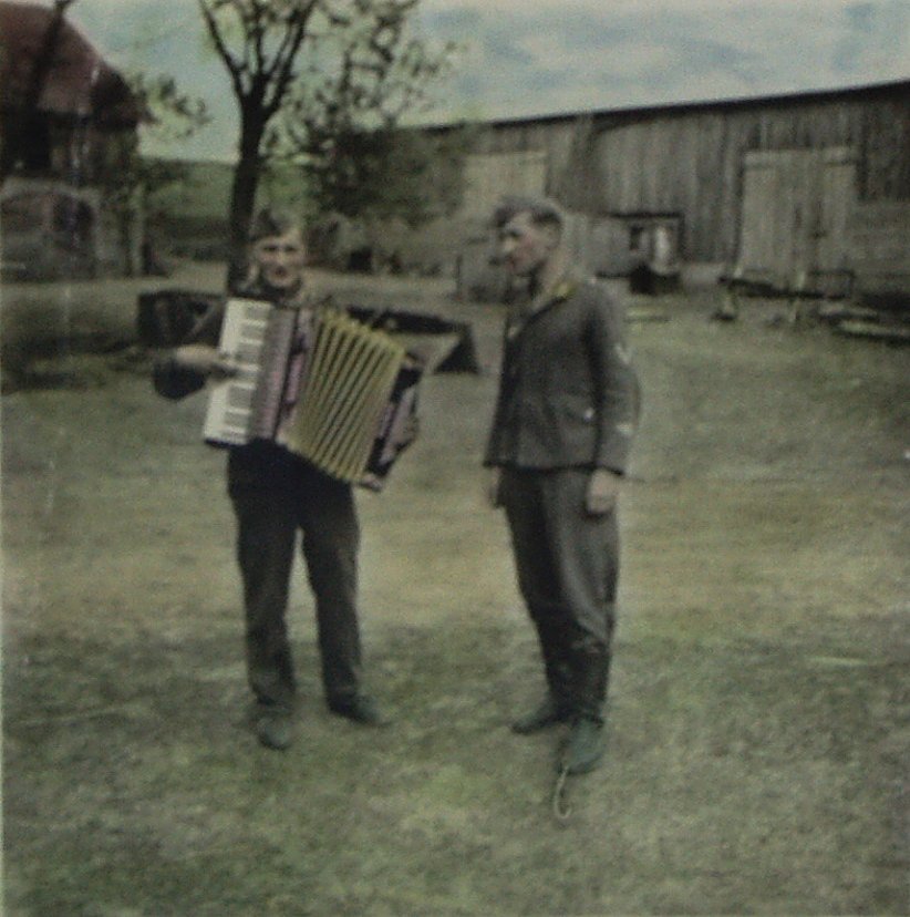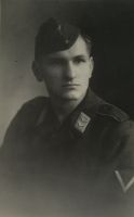 | Gerhard Meier (um 1941) | Gerhard Meier mit Akkordeon auf dem Gunstnik (dem Hof der Fam. Bergmann) | Lilli Bergmann (Aufnahme 28. Mai 1942) (eingezogen als Nachrichtenhelferin) | Gerhard Meier 1943 (Beamter a.K. RLM) Rundfunk- & Fernmeldeingenieur für Radar | ||||||||||