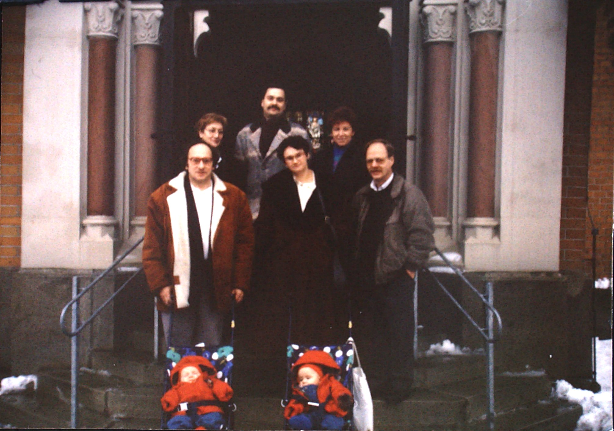 | Taufe von Sarah und Laura Meier, dahinter Winfried Meier, Dagmar Schneider-Meier, geb. Schneider | |||||||||||||