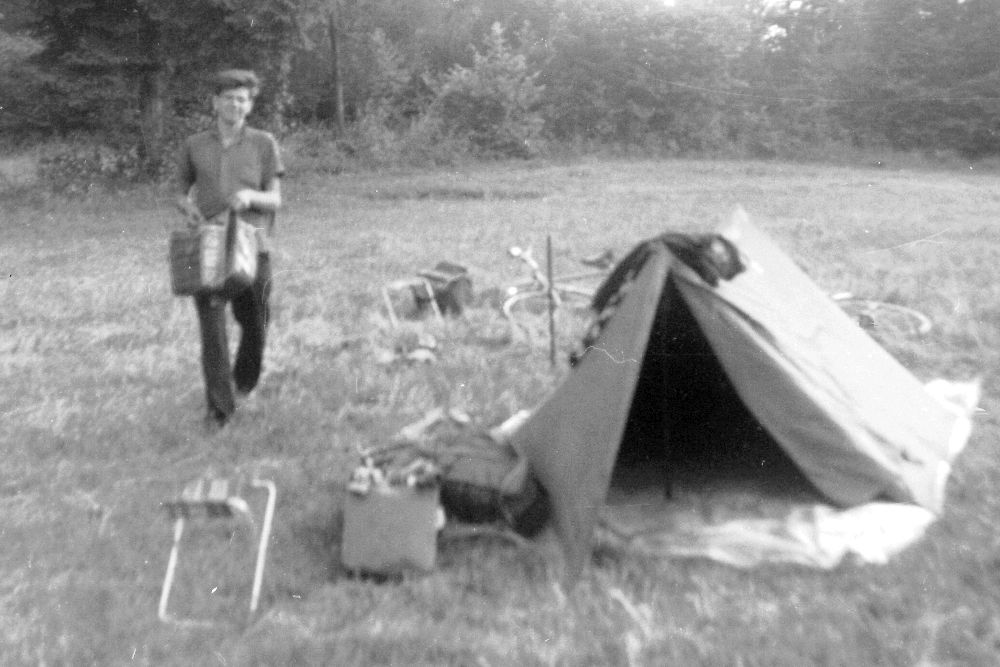 ![]() 4. Tag - Zelten einen Tag später bei Kundel im Inntal kurz vor der Deutschen Grenze - Hier war es viel kühler. Dieter war der Liebling aller Mücken und Stechfliegen dieser Wiese |