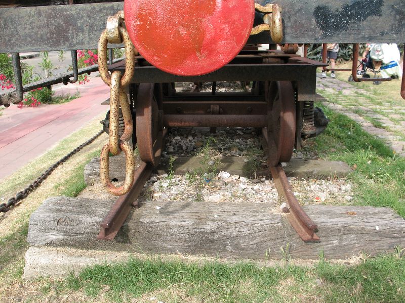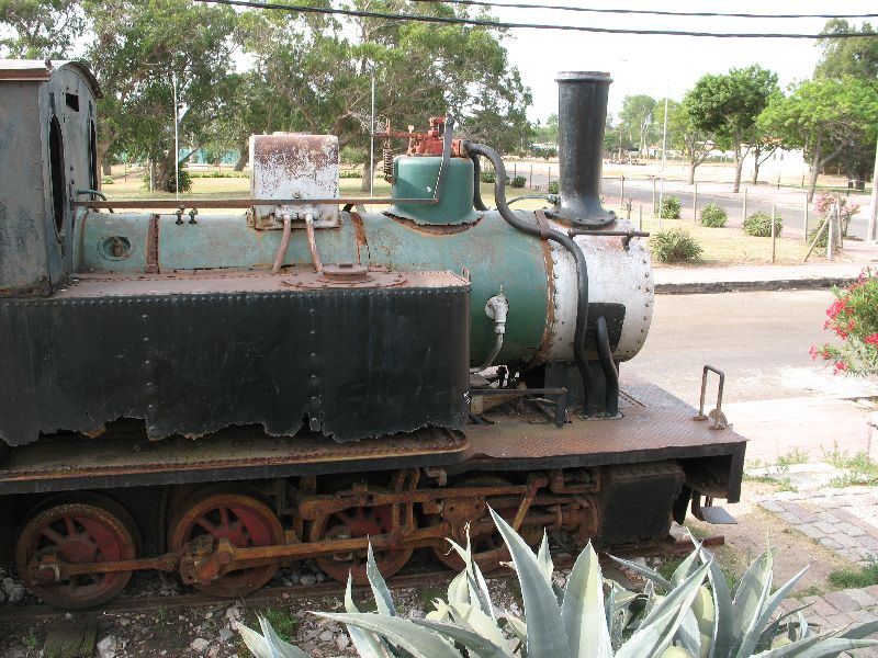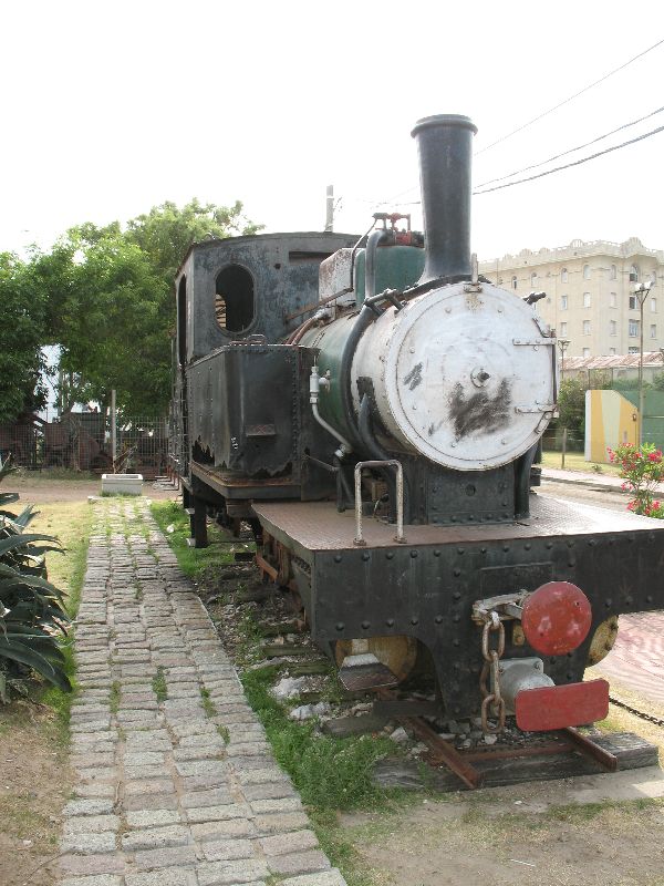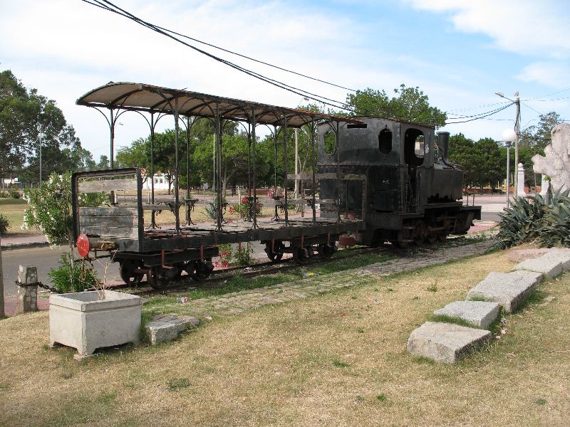 Ursprünglich waren auf der Bahn seit 1908 O&K Lokomotiven und Fahrzeugdrehgestelle und Chassis von Krupp im Einsatz. Anfangs zwei 3-achsige 40 PS Loks Fabr.Nr.2818 und 2819. Wenig später 1910 kam einer 2-achsig 20 PS Lok mit der Fabr. Nr. 3725 hinzu. Dieser folgte eine 4. Lok Achsfolge C mit der Fabr. Nr. 4741 von O&K. 1913 wurden dann 2 O&K Loks mit 125 PS Achsfolge C erworben Fabr.-Nr. 6698 und 6699. Die Listen nennen für die ersten Loks eine Spurweite von 580 mm, für die letzten zwei 800 mm. Fest steht, dass die eine Bahnlinie 750 mm Spur hatte, die anderen Bahnen hatten 600 mm. Außerdem existierte seit 1909 auf der Uferpromenade von Piriapolis eine Art Decauville Bahn mit 600 mm Spurweite, die nicht im Besitz des Unternehmens Piria war. Auf dieser Bahn waren kleine 2-achsige Loks im Einsatz. Die 600mm Lokomotive, Typ 0-8-0T, die 1928 von Henschel & Sohn geliefert wurde, war nie in Piriapolis im Einsatz. Sie stammt aus dem alten Steinbruch Bargueño der uruguayischen Portland Cement Company in der Stadt New Carrara in der Nähe von Piriapolis. Die Initiative zu ihrer Aufstellung ging von der Asociación Amigos del Uruguaya Riel (A.U.A.R.) und der Asociación de Ferromodelistas de Piriapolis (AFEPI) aus. Anfangs stand sie in der Nähe der Promenade. Da ihr Salzwasser erheblichen Schaden zufügte, wurde sie neben die Halle auf dem Gelände von Castillo de Piria versetzt. Dort ist immer noch ein normalspuriger Personenwagen abgestellt. Inzwischen wurde sie an diese Stelle umgesetzt. Hier ist seit 1992 auch das kleine Eisenbahn-Museum der AFEPI entstanden [Ein Link auf ein Video ist weiter unten]. Da die Lok nach wie vor im Freien steht, setzt ihr auch weiterhin die Witterung gewaltig zu. Das Museum ist mit dem Auto über die Autobahn 1 ca. 100 km von Montevideo aus entfernt. Koordinaten des Standortes: 34"51´49.62" S/ 55"16´36.58" W |