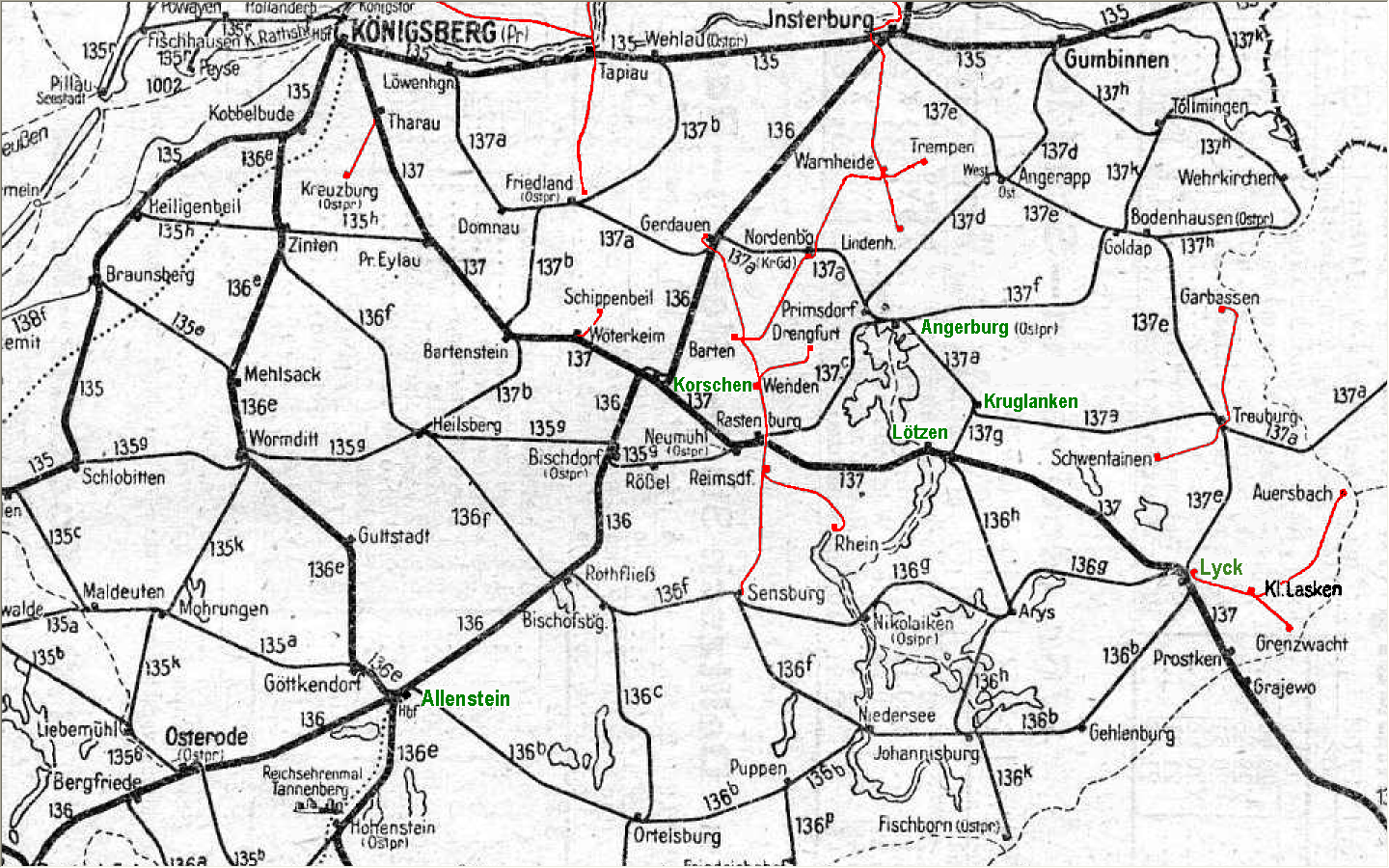 Rastenburg (bei Wilhelmsdorf), Lötzen (bei Antonsdorf) und der