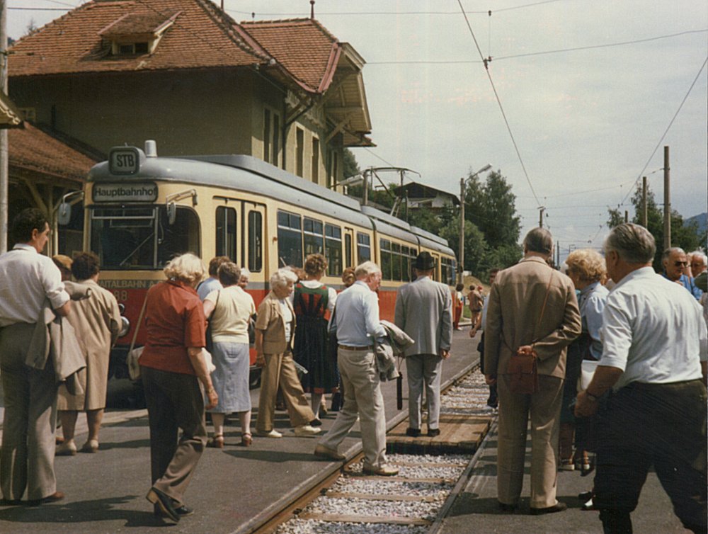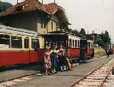 Fahrt der Reisegruppe der "DB Frankfurt" von Interlaken durch den Löschberg nach Brig am Simplon. Hier besuchte Herr Kutzner die Furka-Oberalp Bahn. Die Passstrecke Brieg-Andermatt wurde am 11Oktober 1981 eingestellt Nach der Eröffnung des Tunnels am 25. Juni 1982 unterstützte Hr. Kutzner den Wideraufbau der Pass-Strecke später finanziell mit Spenden.. Diese Schweizreise führte ihn am 29.06.1990 auch zur Sensetalbahn (Dampfbahn Bern). |