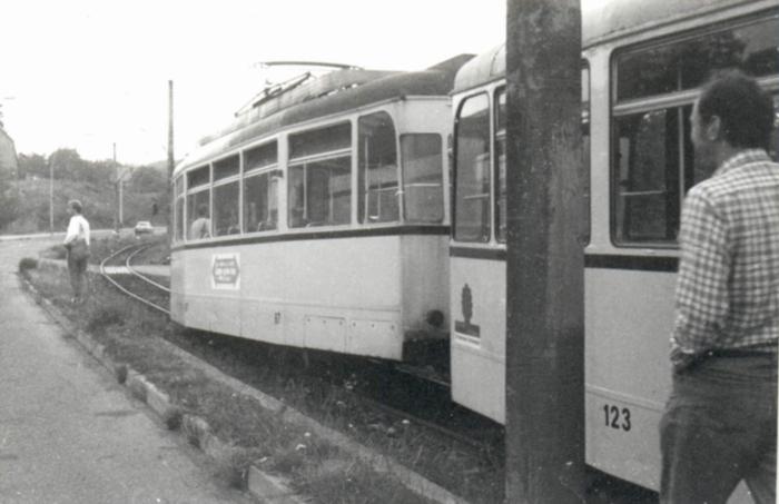 <<< Wir sind der folgenden Straßenbahn entgegen gelaufen, da nun nur noch Zweirichtungswagen eingesetzt werden konnten. Wir waren kurz hinter der Wendeschleife entgleist. | ||||||||||||||||||